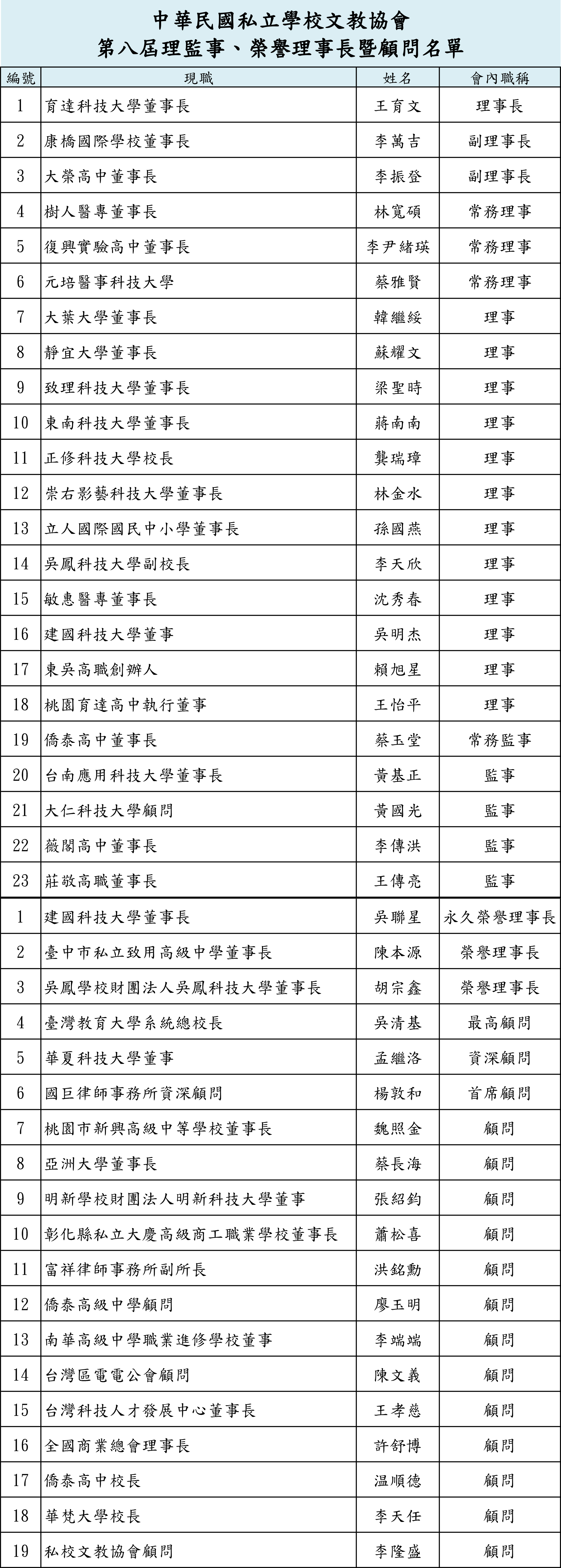 中華民國私立學校文教協會    會址:臺北市松山區南京東路四段103號10樓